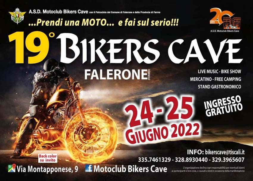 …lo Staff del M.C.BikersCave (FMI) di Falerone (FM), in esterno presso la nota ClubHouse ha organizzato il “19°BikersCave & 20°Compleanno”, dal 24 al 25 Giugno 2022… un ricco Programma per i Bikers & Riders intervenuti, con LiveMusic, BikeShow, BikersShop, Food & Beer, Shows con Andrea Fmx Cavina & Girls Gone Wild… Reportage condiviso, un salutone al Presidente Franco, tutto’ok!!!… by Angel.