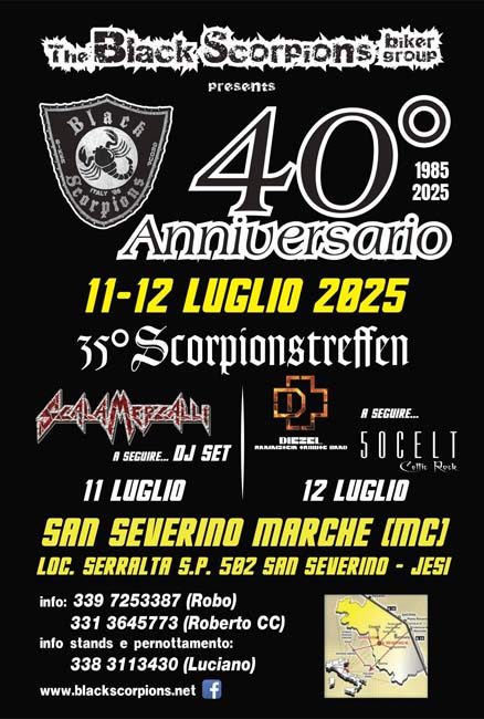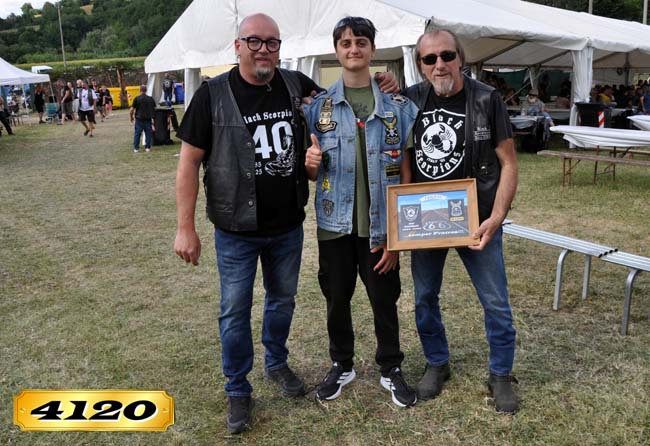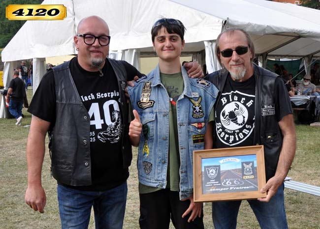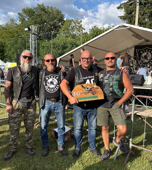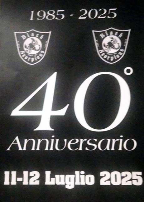 …lo Storico Staff (1985-2025) del Biker Group Black Scorpions di San Severino Marche (MC), ha organizzato il “40°Anniversario & 35°Scorpionstreffen”, dall’11 al 12 Luglio 2025, il Localita’ Serralta – S.P. S.Severino M. – Jesi (MC)… ricco Programma per Bikers, Riders & Trikers, tra’ cui Merchandaising by BS, Meat and Fish Food, Beer and Coffee, LiveMusic, FreeCamping, 40°Patch… noi del B.C.DAT4120 abbiamo consegnamo al Pres.Luciano, una Targa Friends per commemorale l’evento… a tarda sera sul palco, il Ringraziamento agl’intervenuti tutti dal Pres.Luciano, Direttivo & Staff … Reportage condiviso, tutt’ok!!!… by Angel.